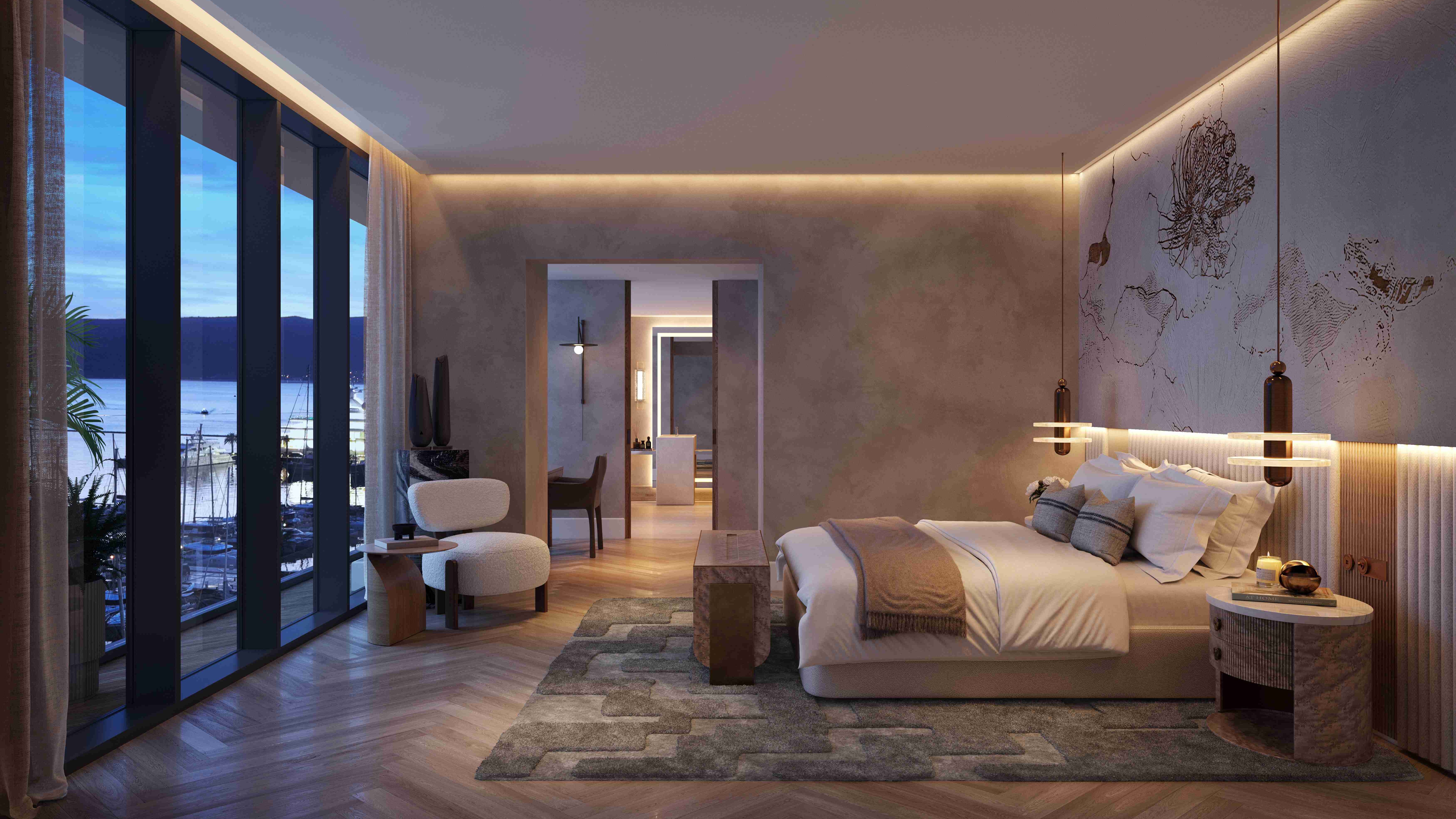 Aeris is nestled in vibrant and innovative Synchro Yards, and it basically stands over water! Expansive views encompass the marina to the south, the beach club to the north, and the open waters directly ahead. Aurora is Set within the brand new and exciting district of Synchro Yards as well. It is only a short walk away to the Synchro building itself with its events, shows, exhibitions and creative facilities. The building has Rare Finds’ 5 star IVO hotel rooms, for example like in Regent, you can buy a room and rent it out through the hotel.
